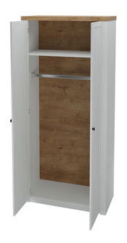 ZobrazitŠatní skříň je ideální volbou pro ty, kteří hledají pohodlí a styl. Dvoudveřová šatní skříň 2D Patty PT13 je model, který bude skvělým začátkem k vytvoření provensálského nebo rustikálního stylu. Tento styl nábytku ovlivňují použité barvy, které vycházejí z čistě bílé a teplých přírodních barevných odstínů dřeva. Přední část skříně je tvořena viditelným rozdělením na svislé desky, které ji tvořily, a malými kovovými úchyty. Vnitřek šatní skříně tvoří velký prostor s tyčí na ramínka a jednou poličkou v horní části. Konstrukce skříně je založena na podstavci, který byl vyroben z masivní laminované desky. Ze stejného materiálu jsou vyrobeny také korpus a horní část skříně. Čela jsou z MDF. Rozměry: šířka: 90 cm, výška: 198 cm, hloubka: 53 cm Barvy: lze zvolit výše Provedení: přední strana: MDF, boky: laminovaná deska se strukturou 15 mm, vrchní část vyrobena z 36 mm laminované desky, potaženo ABS hranou: 0,5 mm, sokl Záruka: 24 měsíců