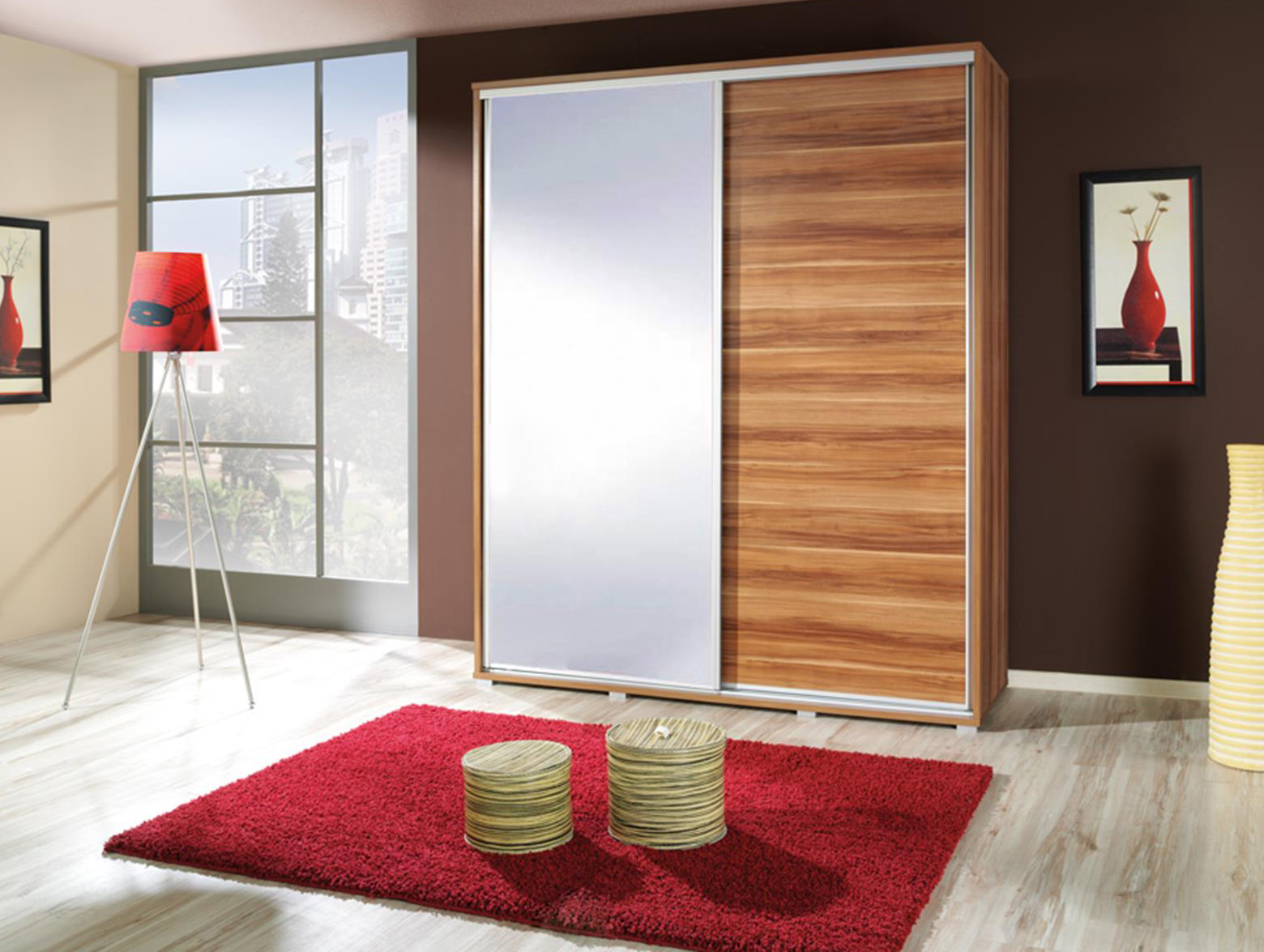 Šatní skříň Peldon 155 (švestka) (se zrcadlem)