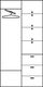 Dvoudílná šatní skříň s klasickými dveřmi a třemi zásuvkami na pravé straně dole. Uvnitř pravého dílu uprostřed nacházejí police. Za levými dveřmi se nachází věšáková tyč pod horní poličkou a na spodku se nachází jedna police. Šedé oválné úchyty, provedení olše a buk.