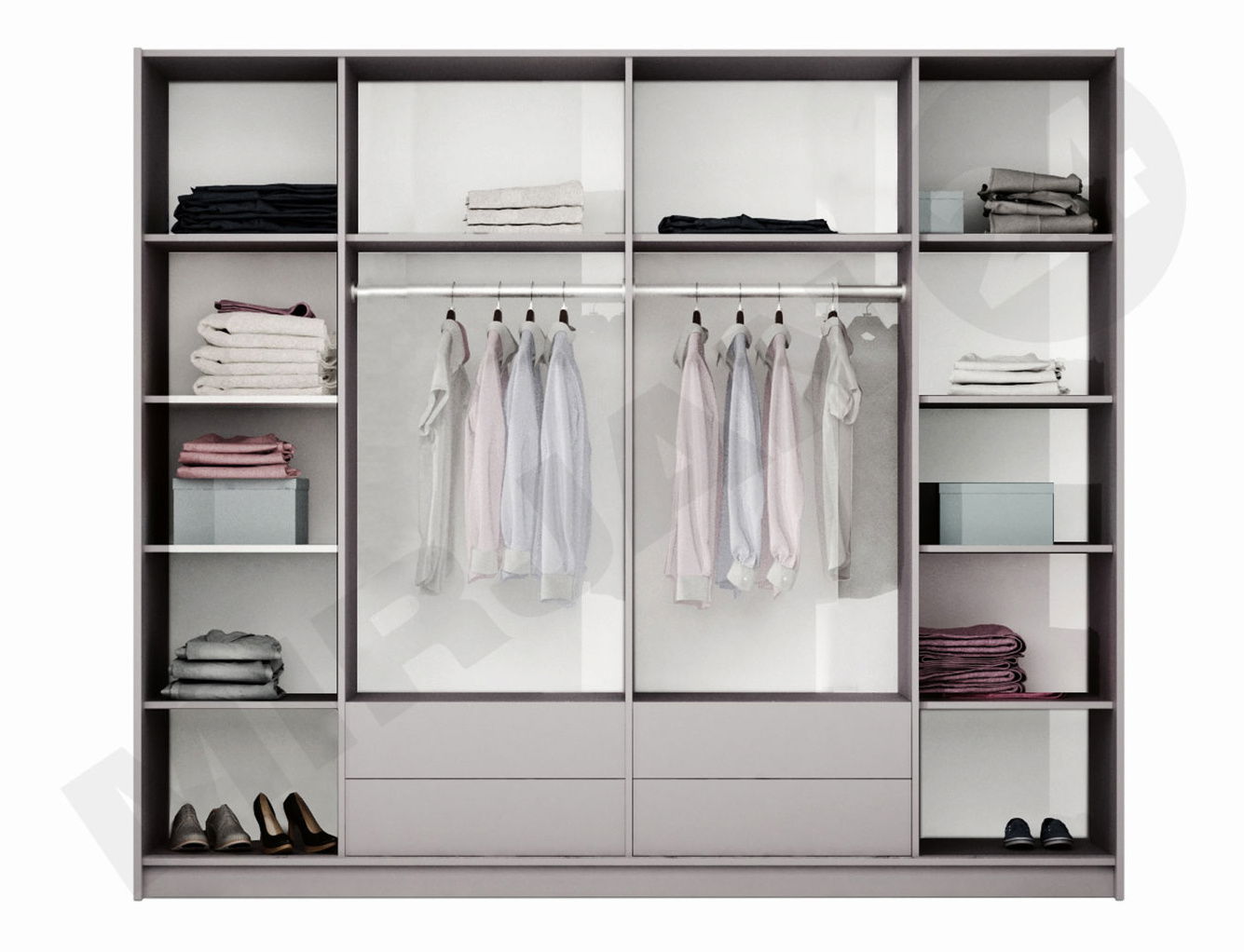 ZobrazitSkříň je ideální volbou pro ty, kteří hledají pohodlí a styl. Rozměry: šířka: 255 cm, výška: 219 cm, hloubka: 65 cm Barvy: možnost výběru barev zde Vyrobeno: laminovaná dřevotřísková deska 16 mm, skříň je vybavena systémem otevírání posuvných a skládaných dveří typu „harmonika“ Hettich horní LED osvětlení dvířkách, Záruční doba: 24 měsíců