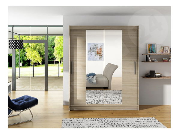 ZobrazitSkříň je ideální volbou pro ty, kteří hledají pohodlí a styl. Rozměry: šířka: 150 cm výška: 200 cm hloubka: 58 cm Barvy: možnost výběru barev zde Vyrobeno: dřevotřísková deska laminovaná 16 mm, Hrany ohranované hranovací páskou ABS, systém posuvných dveří, hliníkové vodící lišty typu Micra z polské firmy Sevroll, zrcadlo si doobjednat za příplatek Záruční doba: 24 měsíců