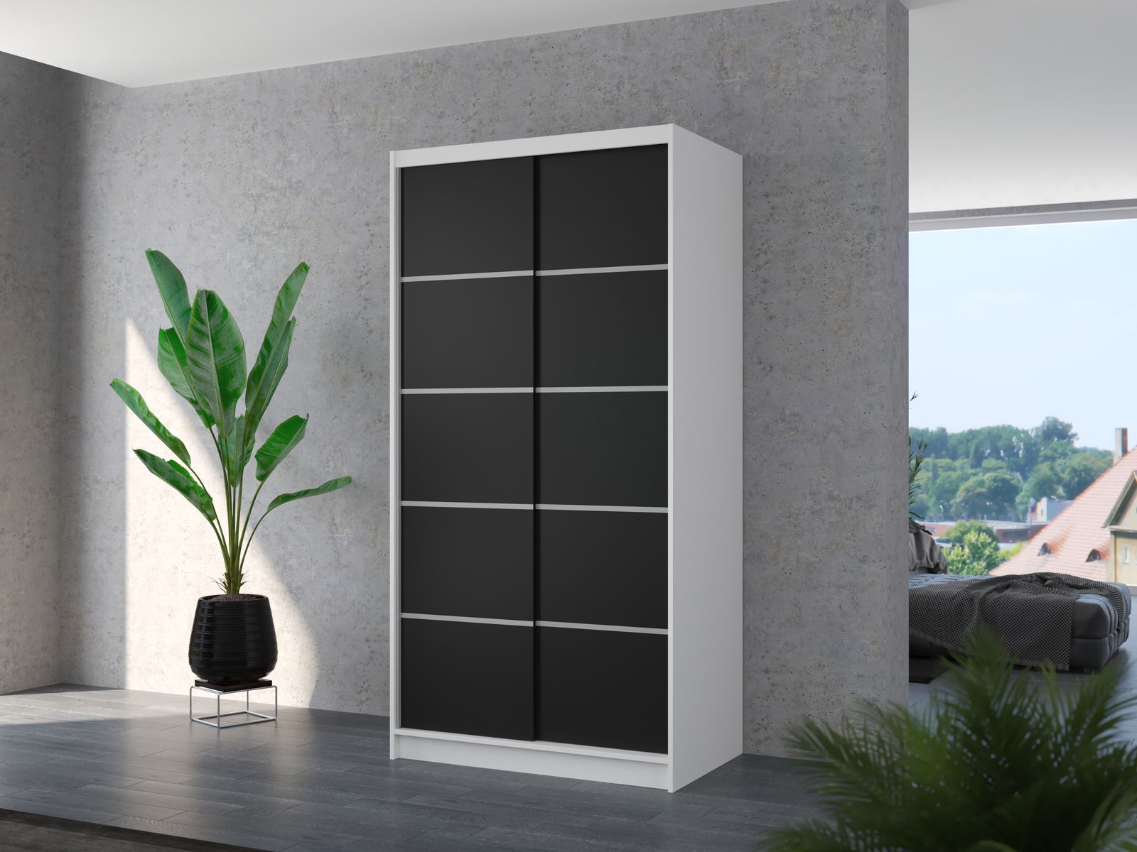 Šatní skříň Remea (bílá + černá)