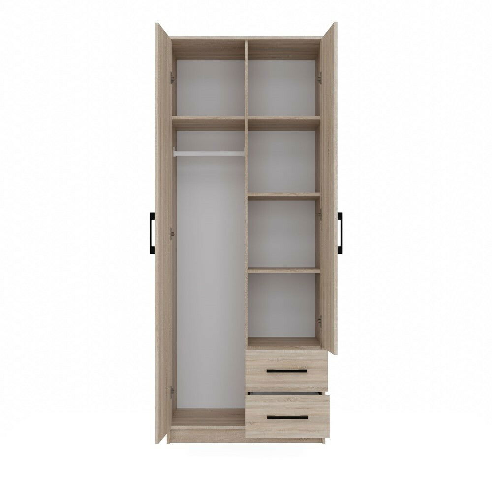 ZobrazitŠatní skříň Rigidez 1 v elegantní barvě dub sonoma je ideálním řešením pro ty, kteří hledají kombinaci funkčnosti a moderního designu. S rozměry 205 cm na výšku a 80 cm na šířku nabízí dostatek prostoru pro oblečení, dokumenty a různé doplňky. Prostorné poličky a speciální prostor pro věšení dlouhých oděvů zajišťují přehlednost a organizaci. Skříň je vybavena velkým zrcadlem, které opticky zvětšuje prostor, a dvěma šuplíky na drobnosti. Její minimalistická forma se hodí do různých interiérů, přičemž odolná laminátová konstrukce zaručuje dlouhou životnost.