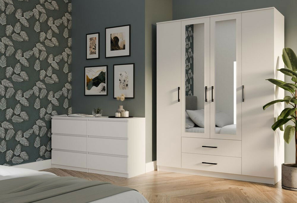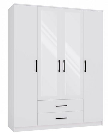 ZobrazitŠatní skříň Rigidez 3 v elegantní bílé barvě je ideálním řešením pro každou ložnici, kde je zapotřebí efektivní uskladnění oblečení. S rozměry 205 cm na výšku, 160 cm na šířku a 52 cm na hloubku nabízí dostatek prostoru pro vaše oblíbené kousky. Skříň je vybavena dvěma prostornými zásuvkami, tyčí na věšení a dvěma velkými zrcadly, které opticky zvětšují prostor. Vyrobeno z kvalitní laminované dřevotřísky, zaručuje dlouhou životnost a moderní vzhled, čímž se stává skvělým doplňkem do vašeho domova.