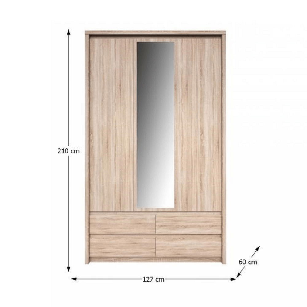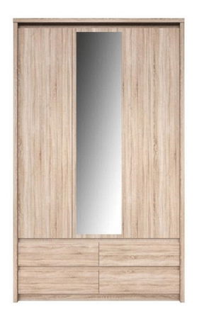 Šatní skříň Rihana Typ 1 (se zrcadlem) je ideální volbou pro ty, kteří hledají prostorově úsporné a funkční řešení pro své odklady. Skříň je vyrobena z materiálu DTD laminovaná a její provedení je v dub sonoma barvě. Rozměry skříně jsou 127x60x210 cm, s tloušťkou materiálu 32 mm a zbývajících částí 16 mm. Skříň nabízí dostatek úložného prostoru díky věšákovým a policovým částem a čtyřem šuplíkům. Zrcadlo umístěné na dveřích skříně je praktickým doplňkem pro úpravu outfitu. Skříň se dodává v demontu, což zaručuje snadnou přepravu a montáž. Šatní skříň Rihana Typ 1 se zrcadlem v dub sonoma barvě je dokonalým prvkem pro vaši ložnici, který poskytne dostatek úložného prostoru a zároveň představuje moderní a stylový nábytek.