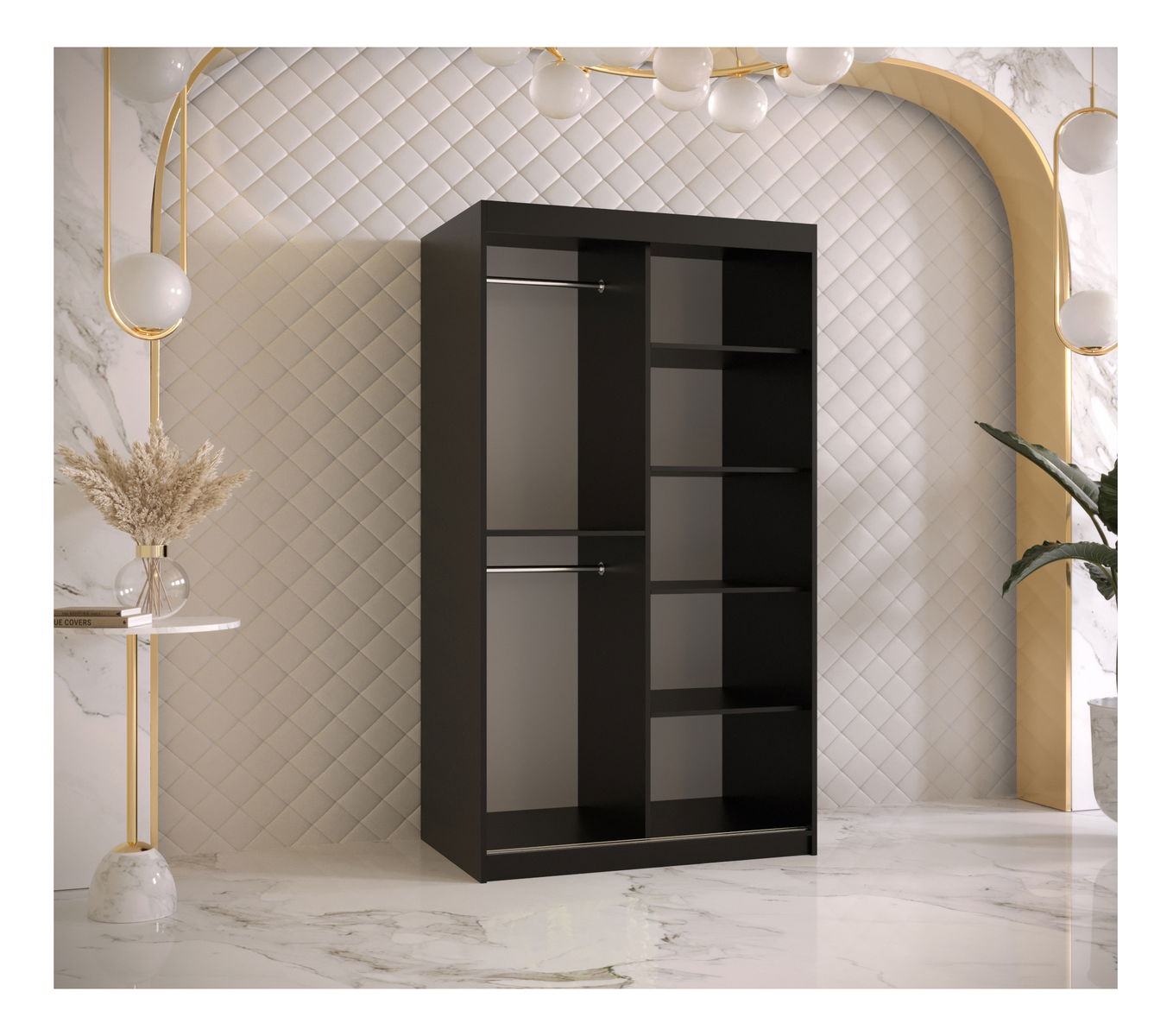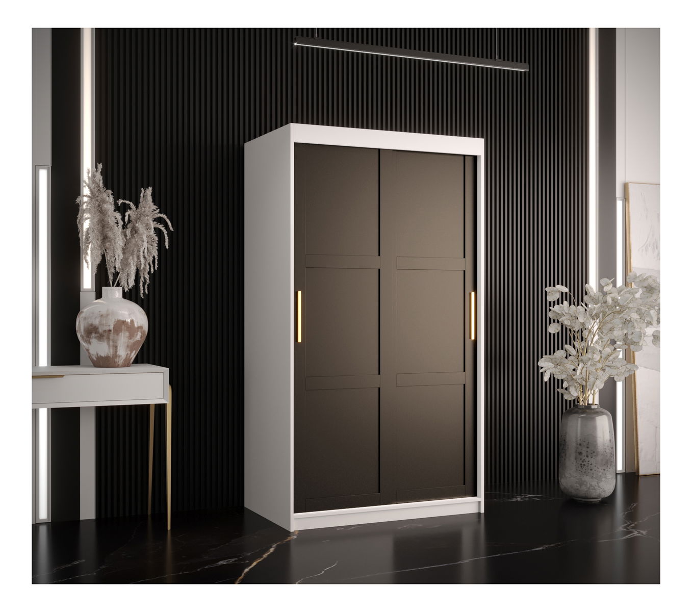Šatní skříň Riven 1 100 (bílá matná + černá matná)