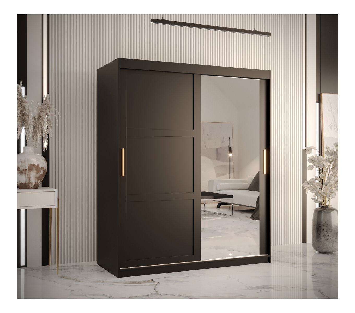 Šatní skříň Riven 2 150 (matná černá) (se zrcadlem)