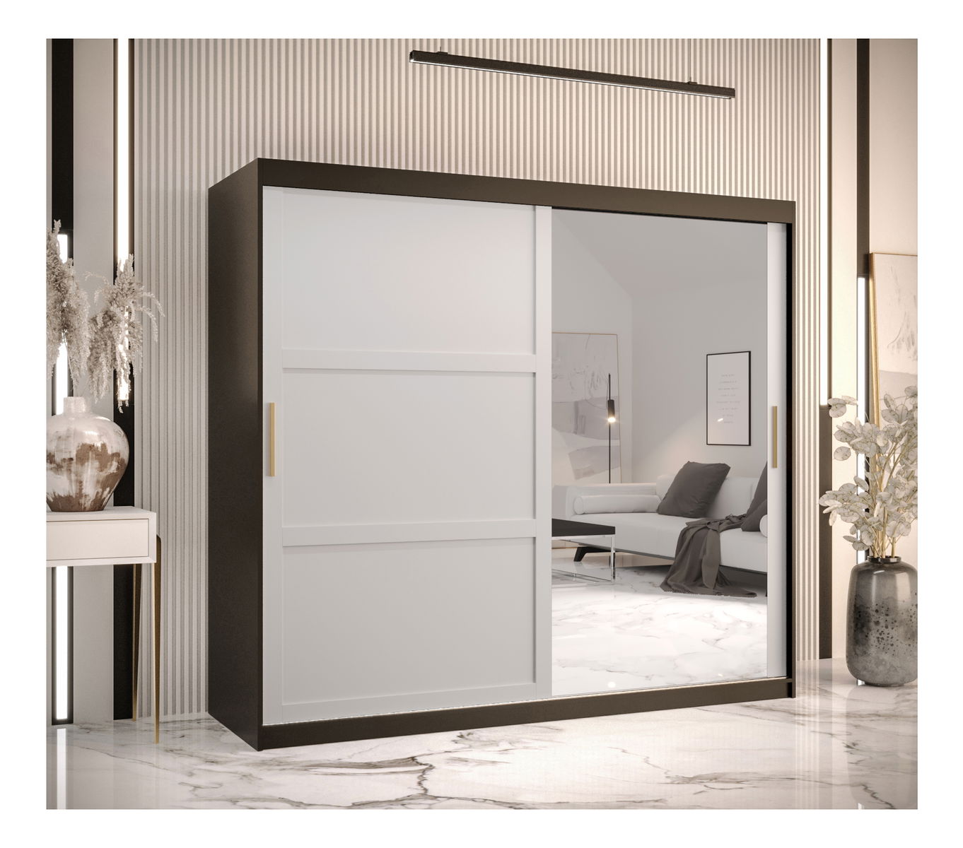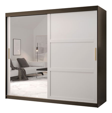 Šatní skříň Riven 2 200 (černá matná + bílá matná) (se zrcadlem)