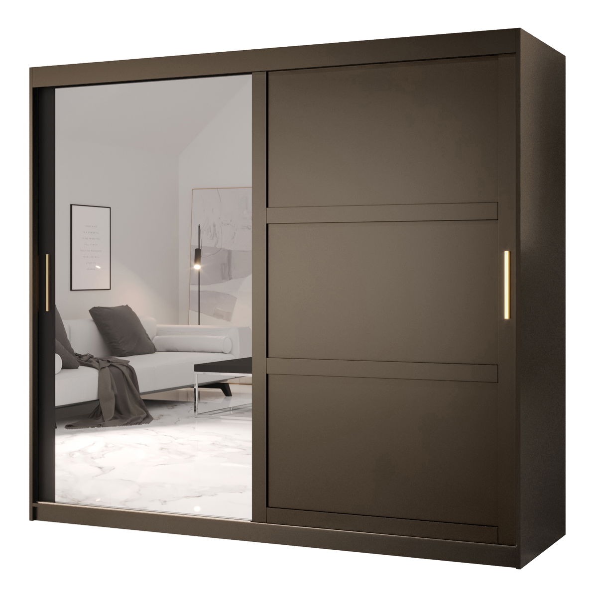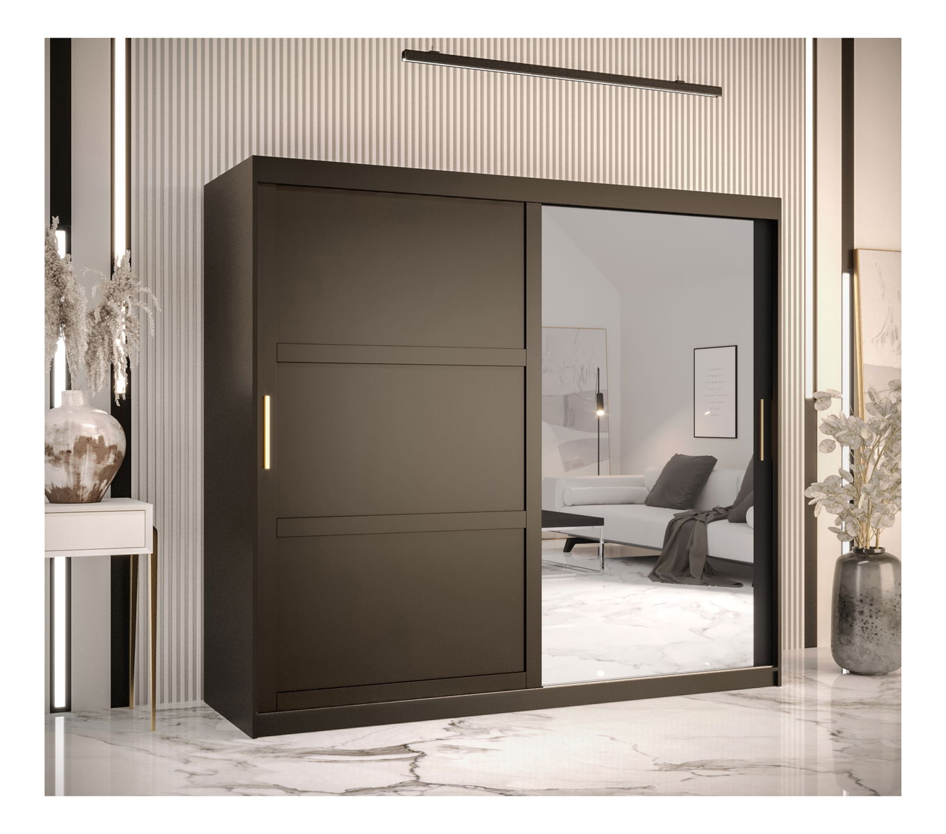 Šatní skříň Riven 2 200 (matná černá) (se zrcadlem)