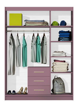ZobrazitModerní třídveřová šatní skříň Lenona II D3 nabízí řadu organizačních možností a úžasný styl. Nechte svůj interiér vyniknout pastelovou švestkovou barvou. Model je obohacen o zlaté detaily, které dokonale zapadají do celku. Má také zrcadlo na přední straně, což je mimořádně užitečné při výběru každodenního stylu na vycházky. Skříň má úžasný interiér. Naleznete zde prostorné police na oblečení a doplňky, úložný prostor s věšákovou tyčí na šaty, košile a obleky a tři prostorné zásuvky, které lze využít na spodní prádlo či ponožky.