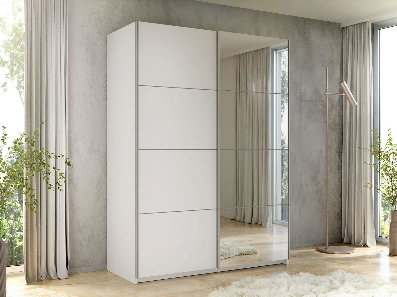 Šatní skříň s posuvnými dveřmi Artaman 150 (bílá) (se zrcadlem)