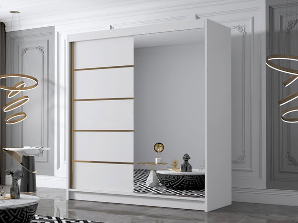 Šatní skříň s posuvnými dveřmi Bratoke III 180 (bílá + zlatá) (se zrcadlem)