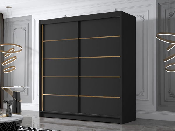 Šatní skříň s posuvnými dveřmi Bratoke IV 180 (černá + zlatá)