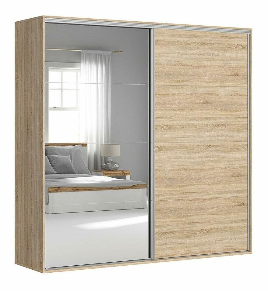 Šatní skříň s posuvnými dveřmi BRW Flex 5 (dub sonoma + bílá) (se zrcadlem)