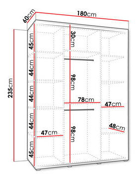 ZobrazitModel nabízí mnoho, od chytrého uspořádání interiéru až po moderní vzhled. Šatní skříň s posuvnými dveřmi Foktra 3 180 je způsob, jak harmonicky zorganizovat místnost. Uvnitř naleznete symetricky umístěné police a dva prostory s tyčemi na šaty. Zajímavá barva v kombinaci se zrcadlem na přední straně dává úžasný vizuální zážitek a má schopnost opticky zvětšit místnost, ve které se nachází. Úspěšně ji můžete umístit do ložnice nebo předsíně. Šatní skříň je dokonalým způsobem pro designové skladování.