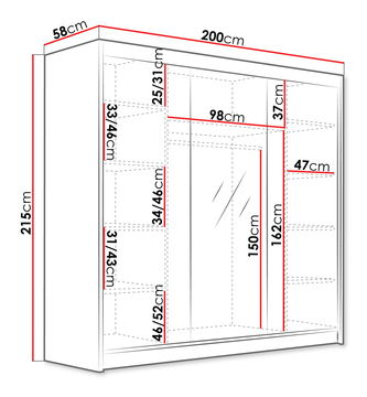 ZobrazitŠatní skříň s posuvnými dveřmi by měla být především prostorná a stylová. Takový je Fozzurt VI 200. Elegantní model, který se hodí do mnoha designů interiéru. Nabízí spoustu prostoru pro organizaci díky prostorným policím a prostoru pro šaty a obleky na ramínkové tyči. Šatní skříň se zrcadlem vytváří jedinečný vizuální efekt. Zrcadlo na přední straně místnost osvěží a opticky zvětší. Navíc je to zajímavý doplněk, který nás doprovází každý den při výběru toho správného stylingu.
