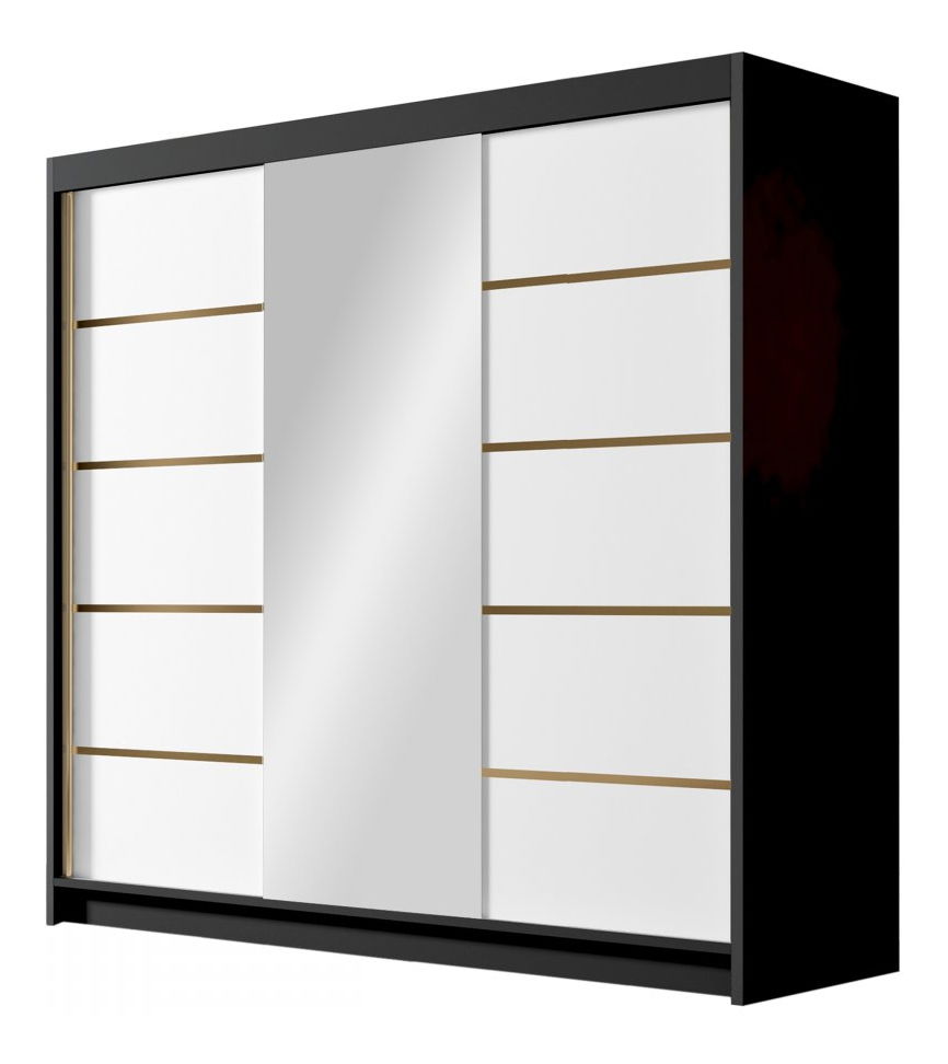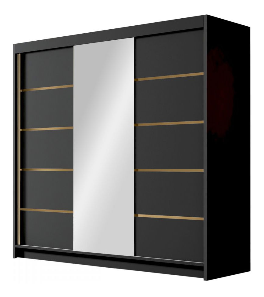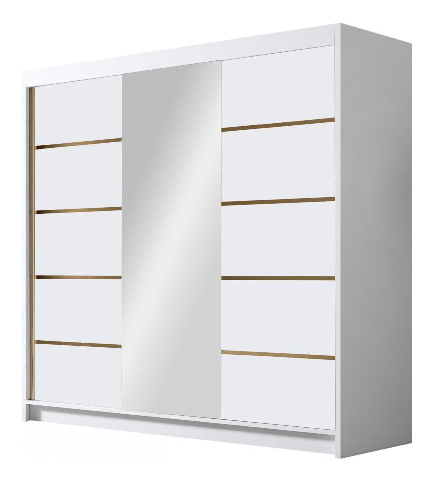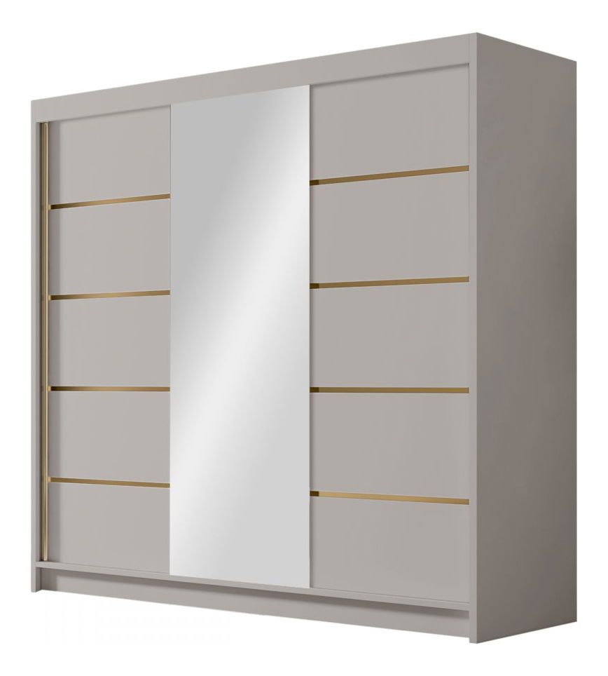 Šatní skříň s posuvnými dveřmi Fozzurt VI 200 (kašmír + zlatá) (se zrcadlem)