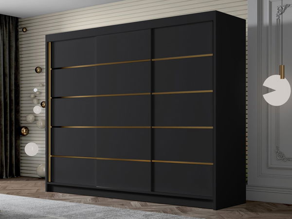 Šatní skříň s posuvnými dveřmi Fozzurt VII 250 (černá + zlatá)