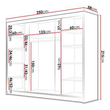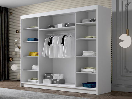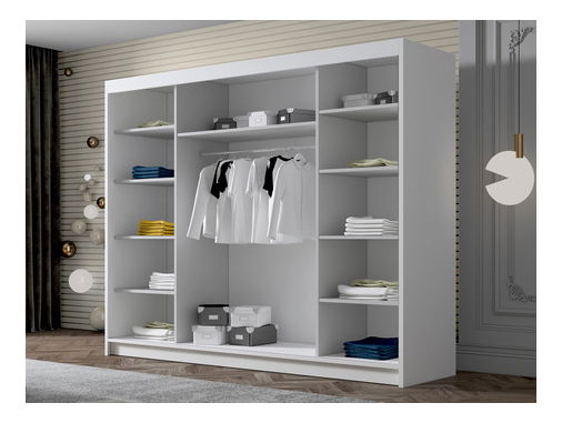 ZobrazitOriginální vzhled šatní skříně s posuvnými dveřmi Fozzurt VII 200 cm se perfektně hodí k modernímu designu interiéru. Ke glamour stylu dokonale zapadají také módní barvy, šik detaily a jednoduchost, se kterou byl nábytek navržen. Ozdobné lišty připevněné na čela šatníku zde dodávají avantgardní prvek. Prostorná šatní skříň Fozzurt VII 200 s posuvnými dveřmi je skvělým základem domácího šatníku. Kombinace prostorných polic a prostoru pro zavěšení věšáků znamená, že nábytek nabízí spoustu místa pro oblečení, doplňky a různé druhy doplňků.