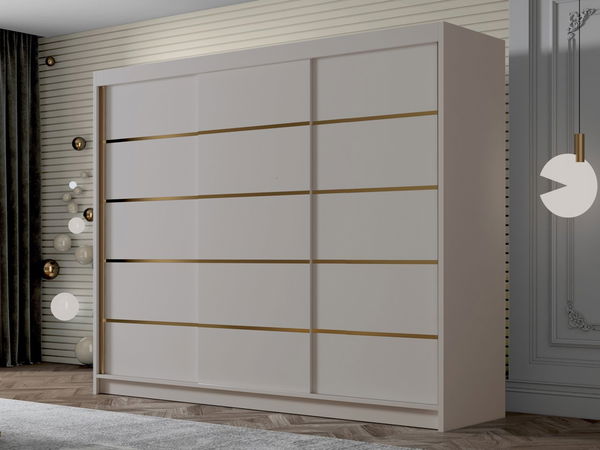 Šatní skříň s posuvnými dveřmi Fozzurt VII 250 (kašmír + zlatá)