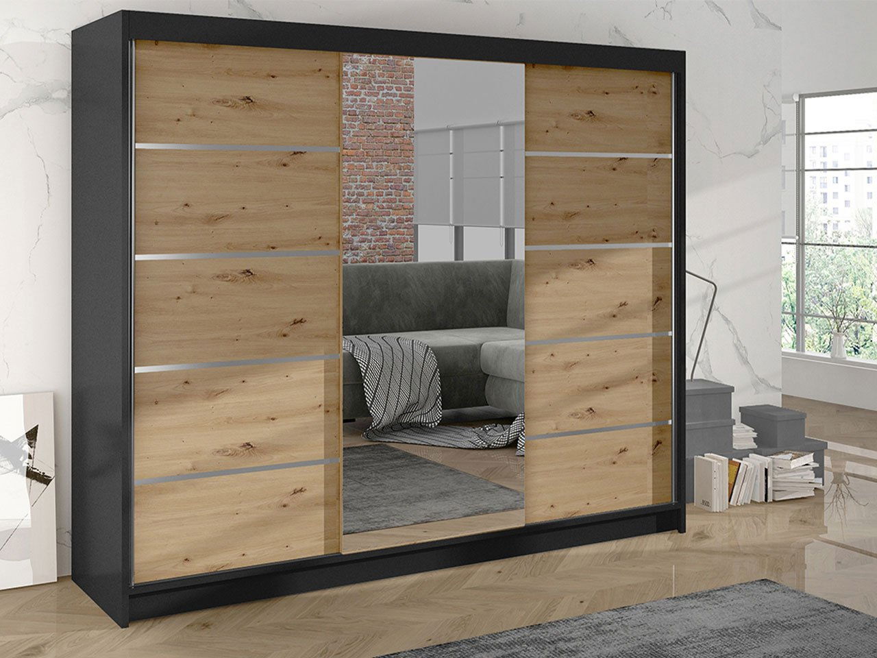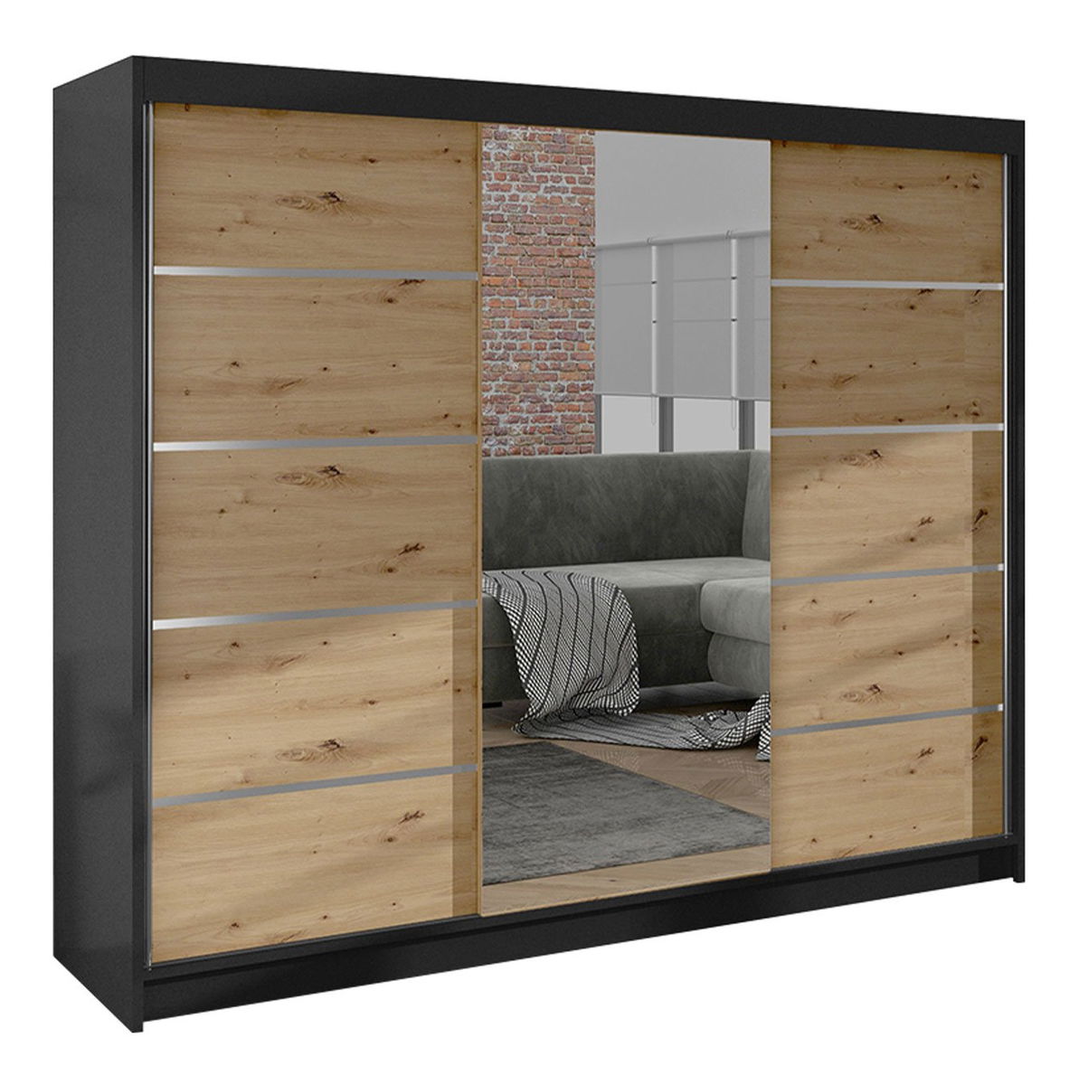 Šatní skříň s posuvnými dveřmi Galiana VI (černý + dub artisan)