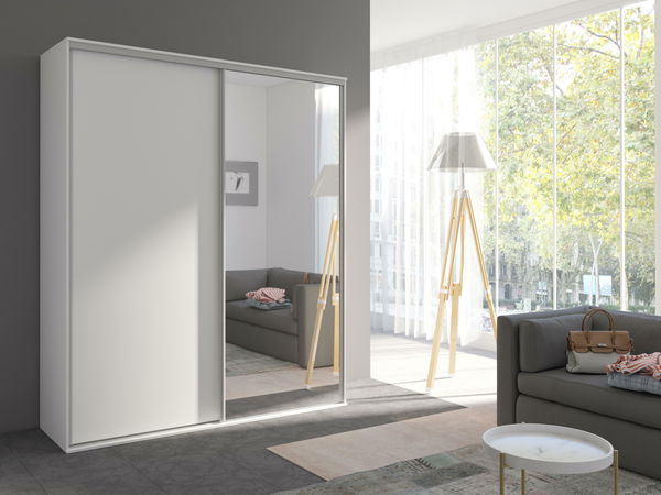 Šatní skříň s posuvnými dveřmi Gantera 1 B (bílá) (se zrcadlem)