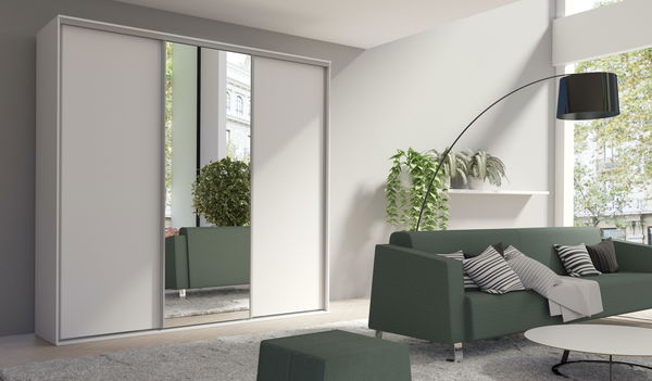 Šatní skříň s posuvnými dveřmi Gantera 3 B (bílá) (se zrcadlem)