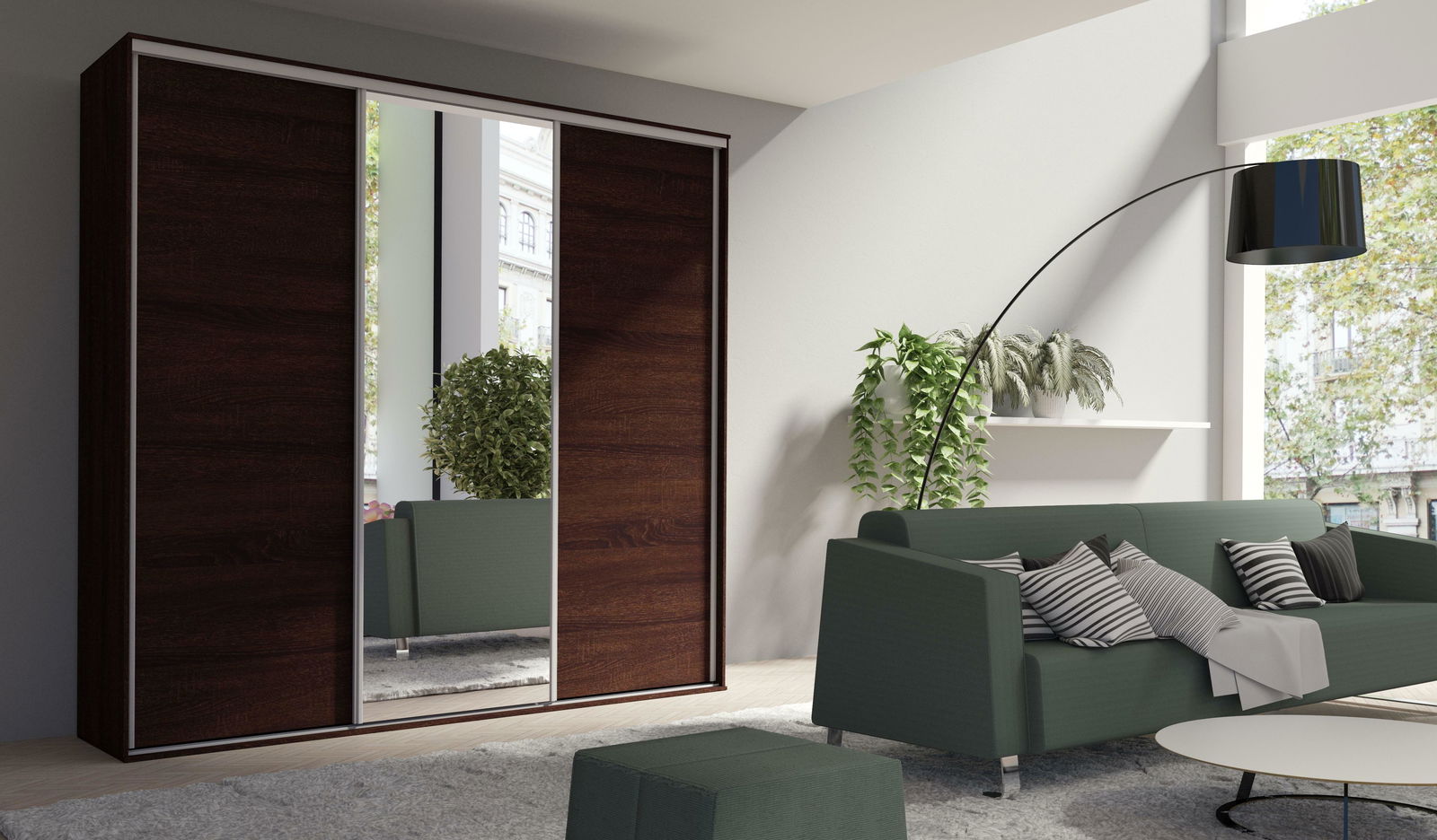 Šatní skříň s posuvnými dveřmi Gantera 3 B (čokoládová) (se zrcadlem)