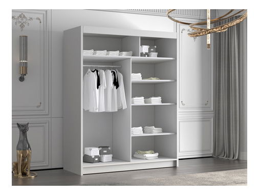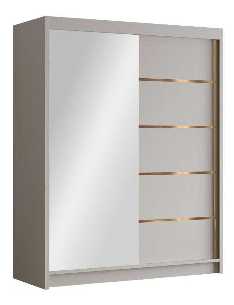 ZobrazitObjevte funkčnost, kterou nabízí posuvná šatní skříň s posuvnými dveřmi a zrcadlem Hyzron III 150. Její interiér ukrývá množství polic a tyč na zavěšení oblečení. Tato kombinace vám umožní uložit všechny potřebné věci do šatníku na jednom místě. Boty, oblečení, doplňky nebo svrchní oblečení budou přehledně uspořádány. Za povšimnutí stojí i čela šatní skříně. Jednou částí je prostorné zrcadlo, které usnadňuje každodenní přípravu. Při oblékání ranního outfitu si jej můžete okamžitě prohlédnout a zkontrolovat svůj vzhled. Druhé křídlo má dekorativní prvek v podobě zlatých lamel. Šatní skříň s posuvnými dveřmi je zajímavým designovým prvkem interiéru, který zároveň zvyšuje jeho funkčnost.