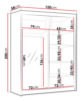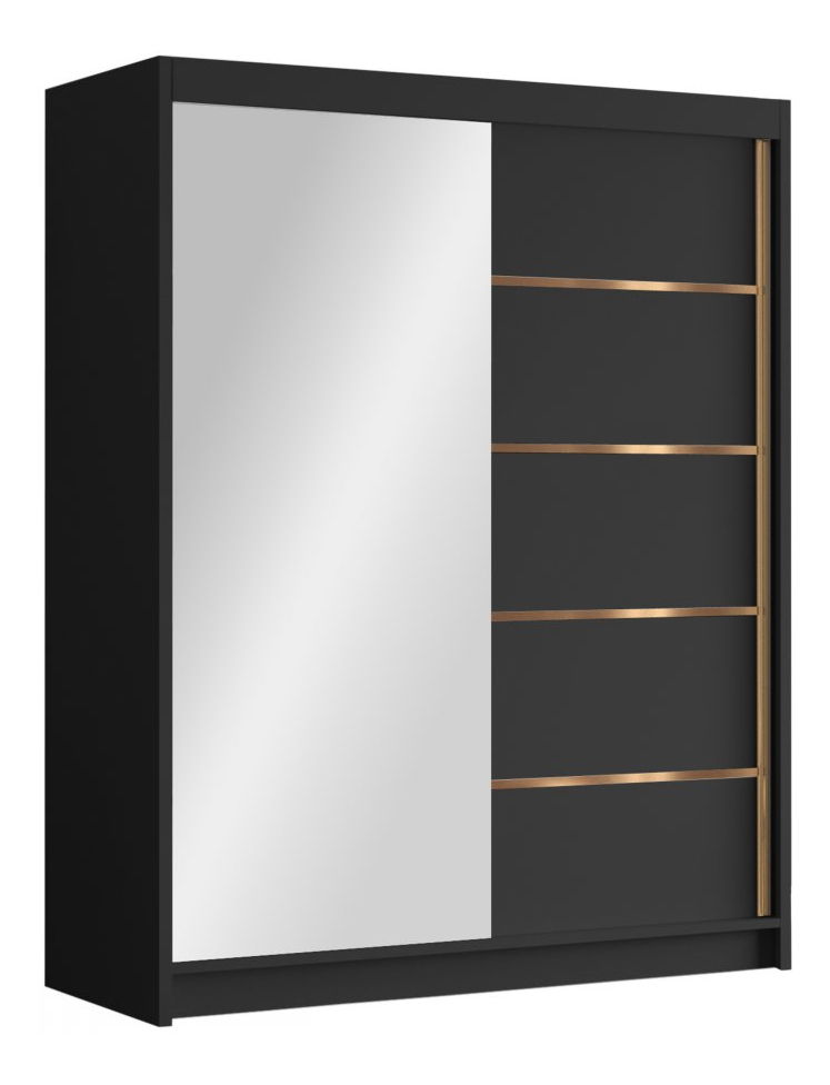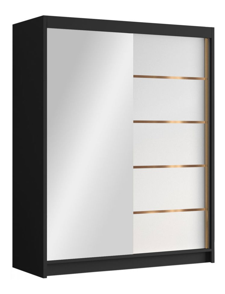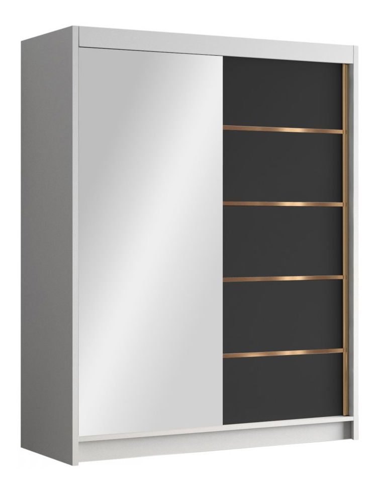 Šatní skříň s posuvnými dveřmi Hyzron III 150 (bílá + černá + zlatá) (se zrcadlem)