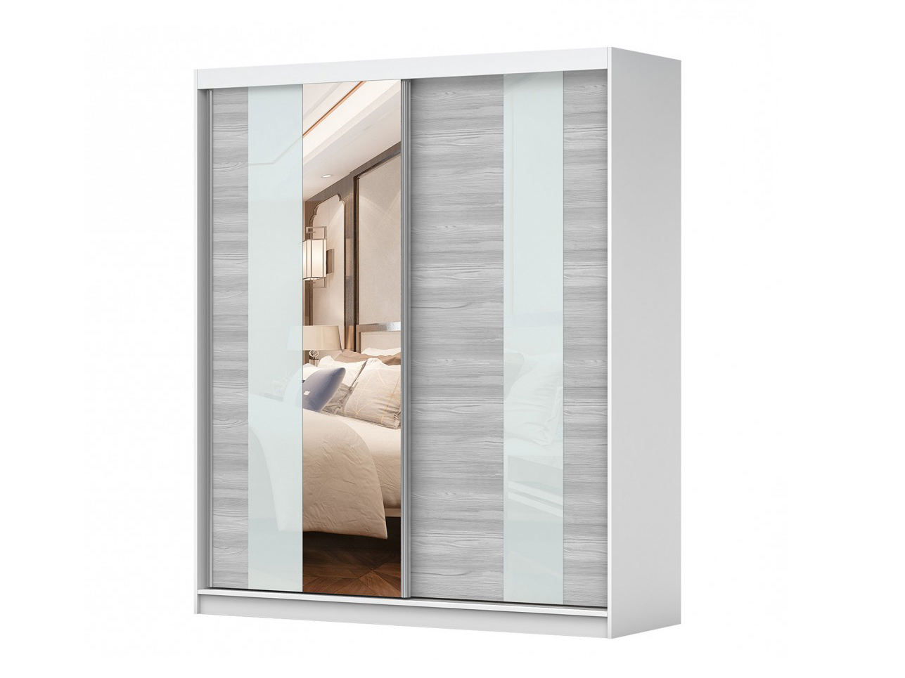ZobrazitHledáte prostornou šatní skříň s posuvnými dveřmi do ložnice nebo předsíně? Podívejte se na model Klary! Šatní skříň je vybavena dvěma řadami polic a tyčí na ramínka. Velký šatník bude prostorný a funkční. Další výhodou modelu jsou zrcadla umístěná na přední straně posuvných dveří. Mají dekorativní funkci a při dobrém uspořádání nábytku prosvětlí místnost.