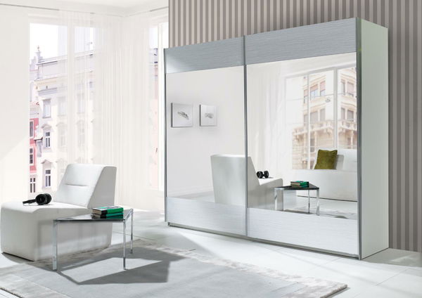 Šatní skříň s posuvnými dveřmi Laurenia (bílá) (se zrcadlem)