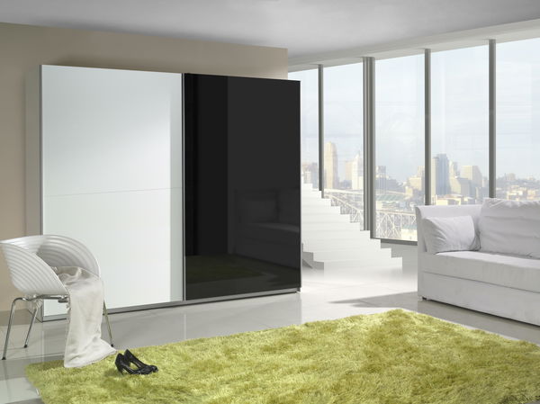 Šatní skříň s posuvnými dveřmi Liff 02 (bílá + lesk černý)