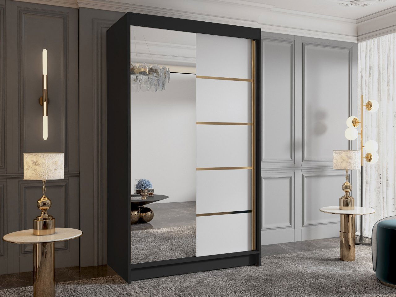 Šatní skříň s posuvnými dveřmi Monata III 100 (černá + bílá + zlatá) (se zrcadlem)