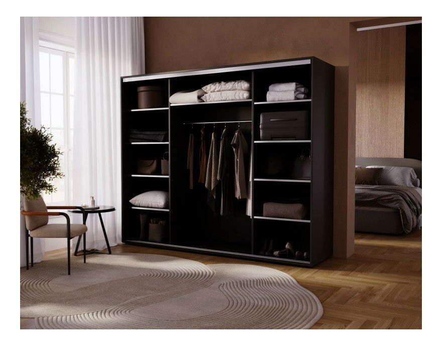 Šatní skříň s posuvnými dveřmi Settrona 1 (antracit) (se zrcadlem)