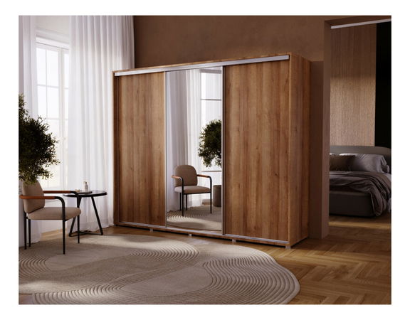 Šatní skříň s posuvnými dveřmi Settrona 1 (dub catania) (se zrcadlem)