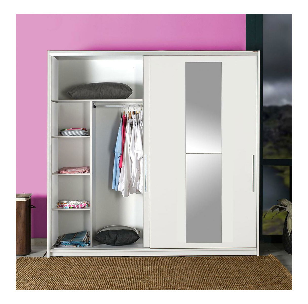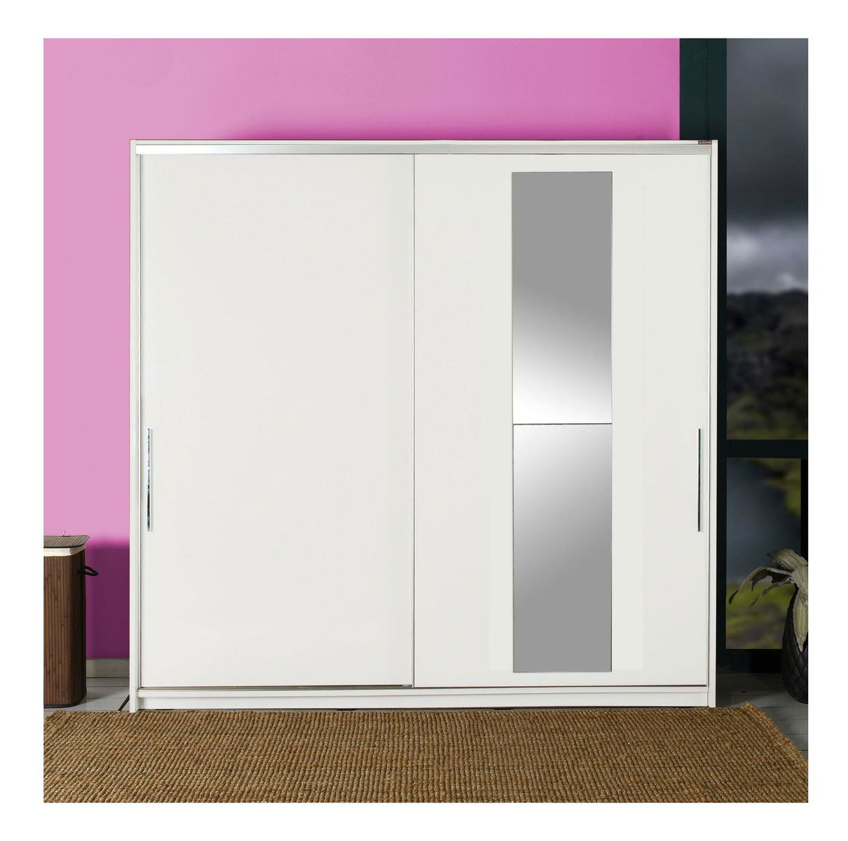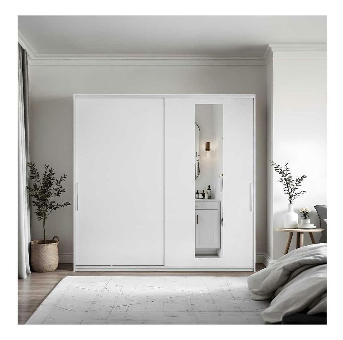 Šatní skříň s posuvnými dveřmi Seworella 6 (se zrcadlem) (bílá)