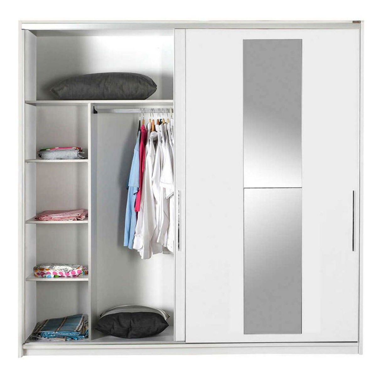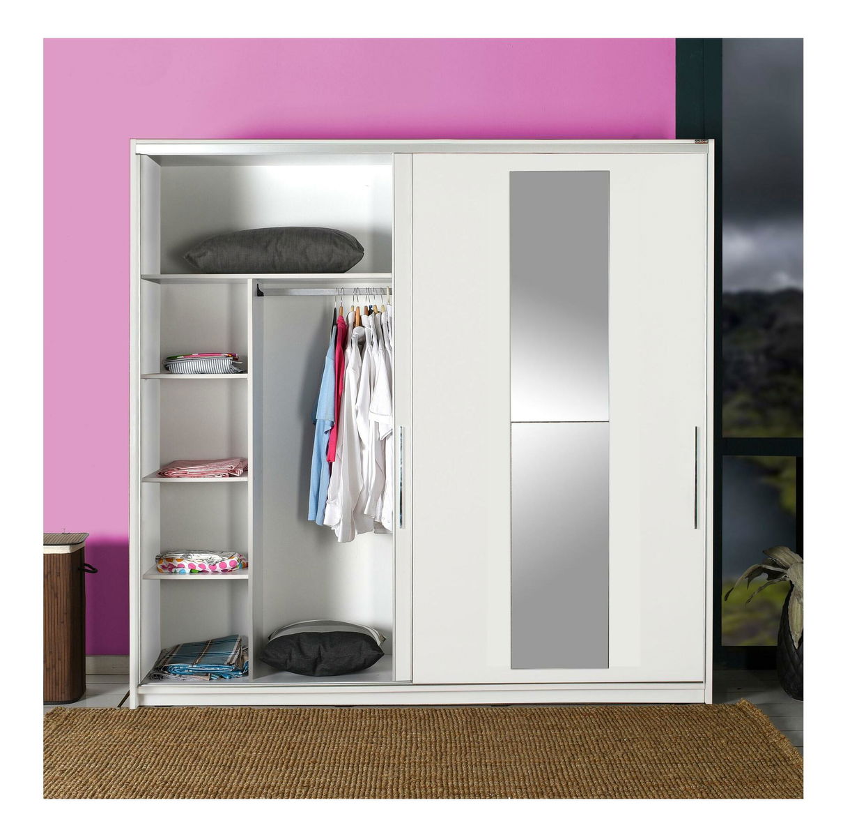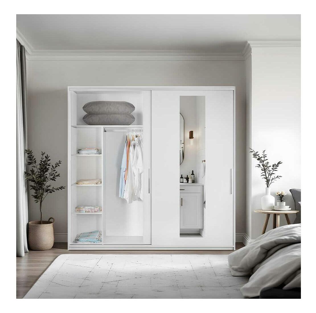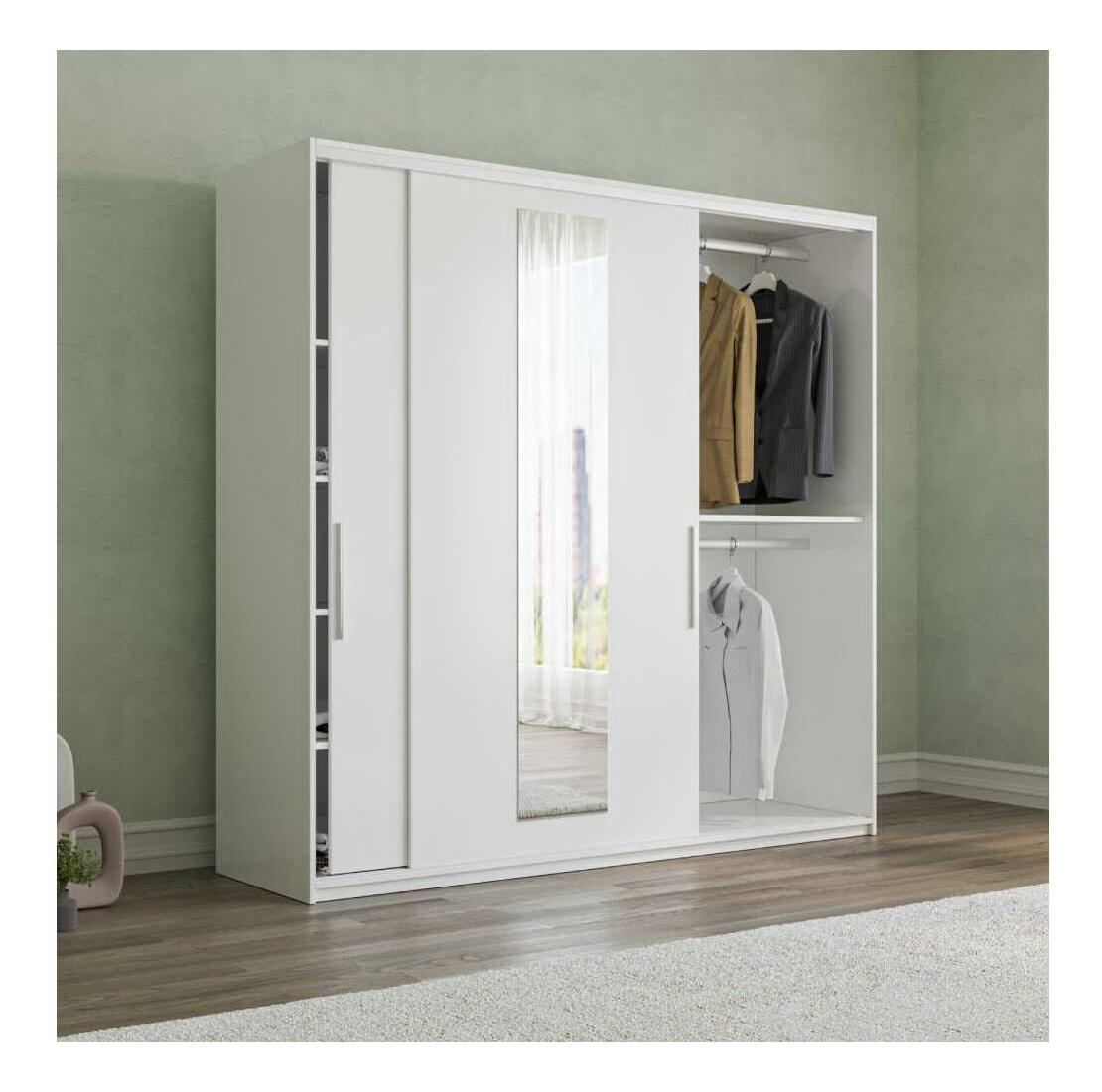 Šatní skříň s posuvnými dveřmi Seworella 6 (se zrcadlem) (bílá)