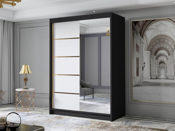 Šatní skříň s posuvnými dveřmi Varentona III 120 (černá + bílá + zlatá) (se zrcadlem)