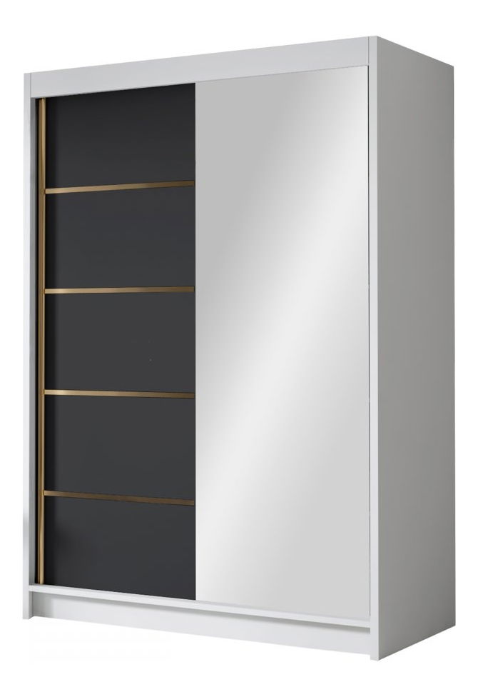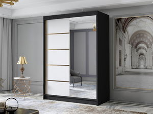 ZobrazitVarentona III 120 v sobě spojuje styl, kvalitu a funkčnost. Za svůj jedinečný design vděčí ozdobným vložkám v matné zlaté barvě. Šatní skříň do ložnice nabízí značnou kapacitu. V jejím nitru naleznete široké, prostorné police a prostor na ramínka. Šatní skříň se zrcadlem a posuvnými dveřmi je praktickou volbou. Budete těžit z průhlednosti a optického zvětšení místnosti. Kromě toho vás bude s radostí doprovázet při výběru vašeho stylingu na večer nebo na den v práci či na univerzitě.