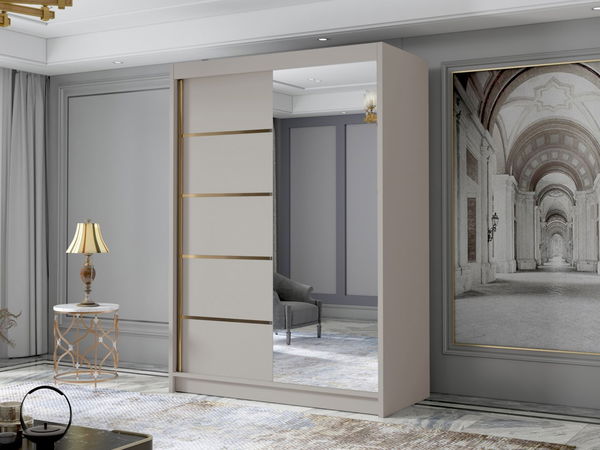 Šatní skříň s posuvnými dveřmi Varentona III 120 (kašmír + zlatá) (se zrcadlem)