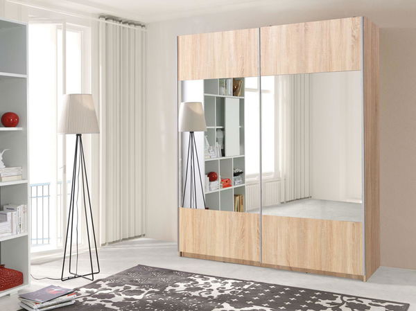 Šatní skříň s posuvnými dveřmi Wartessa 1 B (dub sonoma) (se zrcadlem)