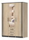 Stylová šatní skříň Sabine s praktickým úložným prostorem pro oblečení a doplňky v optimálně využitém prostoru. Tři dveře, středové jsou s zrcadlem pro kontrolu outfitu. Tři zásuvky pro menší předměty. Tradičně otevřená čela usnadňují používání. Ideální pro hledající kvalitní nábytek s úložnými možnostmi.