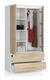 Šatní skříň Safwan se 2 dvířky a 2 šuplíky je klasickou nabídkou pro všechny lidi, kteří si cení jednoduchosti a minimalismu. Nábytek je ideální pro obývací pokoj, ložnici, obývací pokoj a mládežnický pokoj. Šatní skříň je vyrobena z kvalitní laminované desky, která je odolná vůči oděru. Zásuvky se pohybují na kovových válečkových vodítkách. Hrany skříně jsou pokryty ABS lemováním, které poskytuje vysokou ochranu proti poškození. Skříň Safwan je prostorná, vyznačuje se také odolností a pevností, díky čemuž bude sloužit dlouhá léta. Její jednoduchý tvar a barva ji předurčují do minimalistických a moderních interiérů.