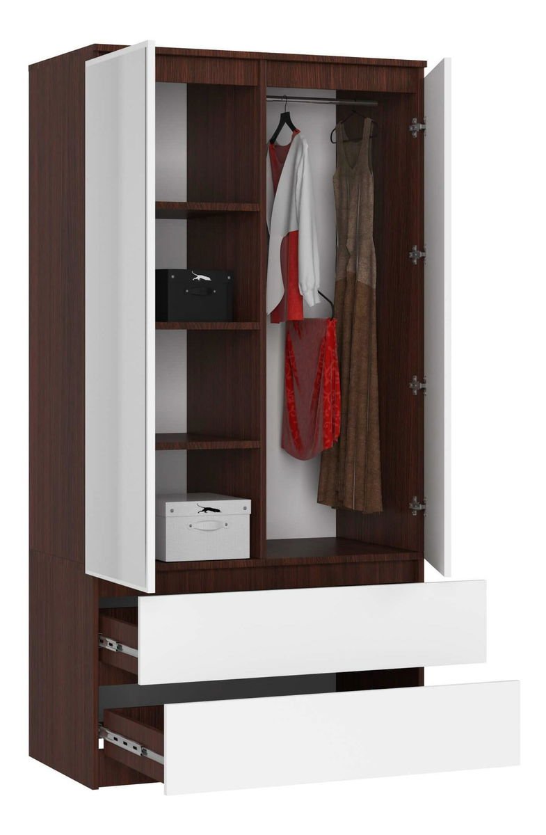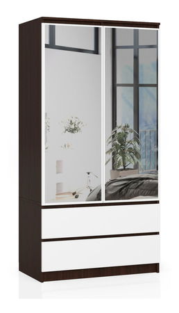 Šatní skříň Safwan II (wenge + bílá) (se zrcadlem)