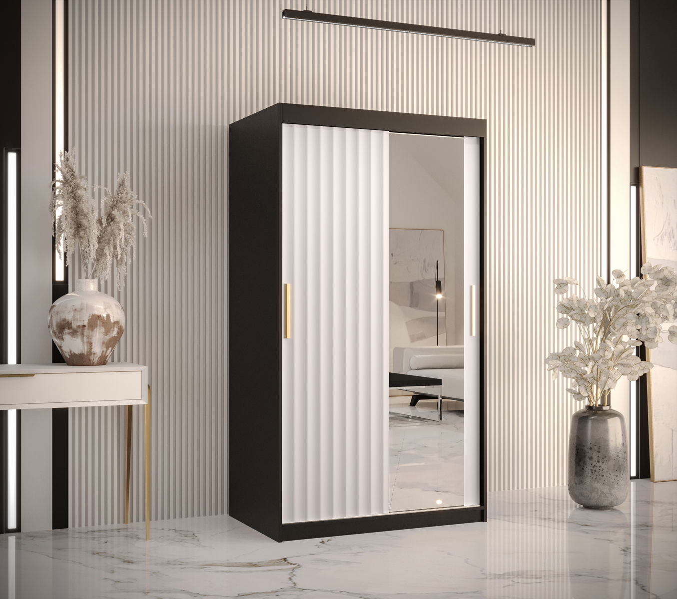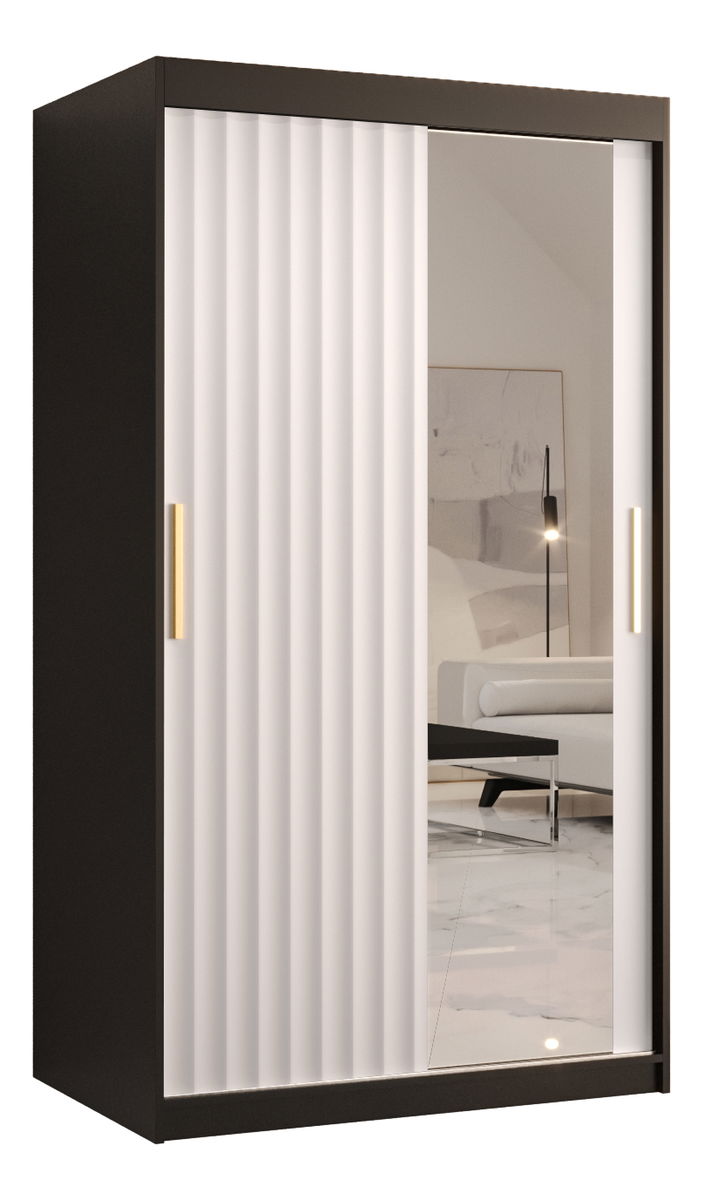 - Šatní skříň se zrcadlem 120 cm Riana Wa 2 120 (černá + bílá matná)