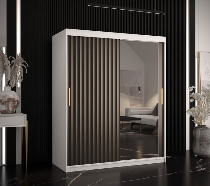 - Šatní skříň se zrcadlem 150 cm Riana Wa 2 150 (bílá + černá)