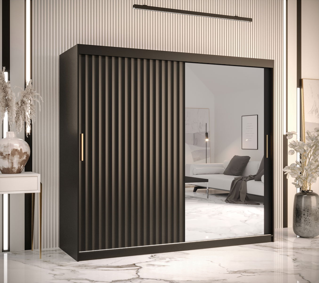 - Šatní skříň se zrcadlem 200 cm Riana Wa 2 200 (černá)