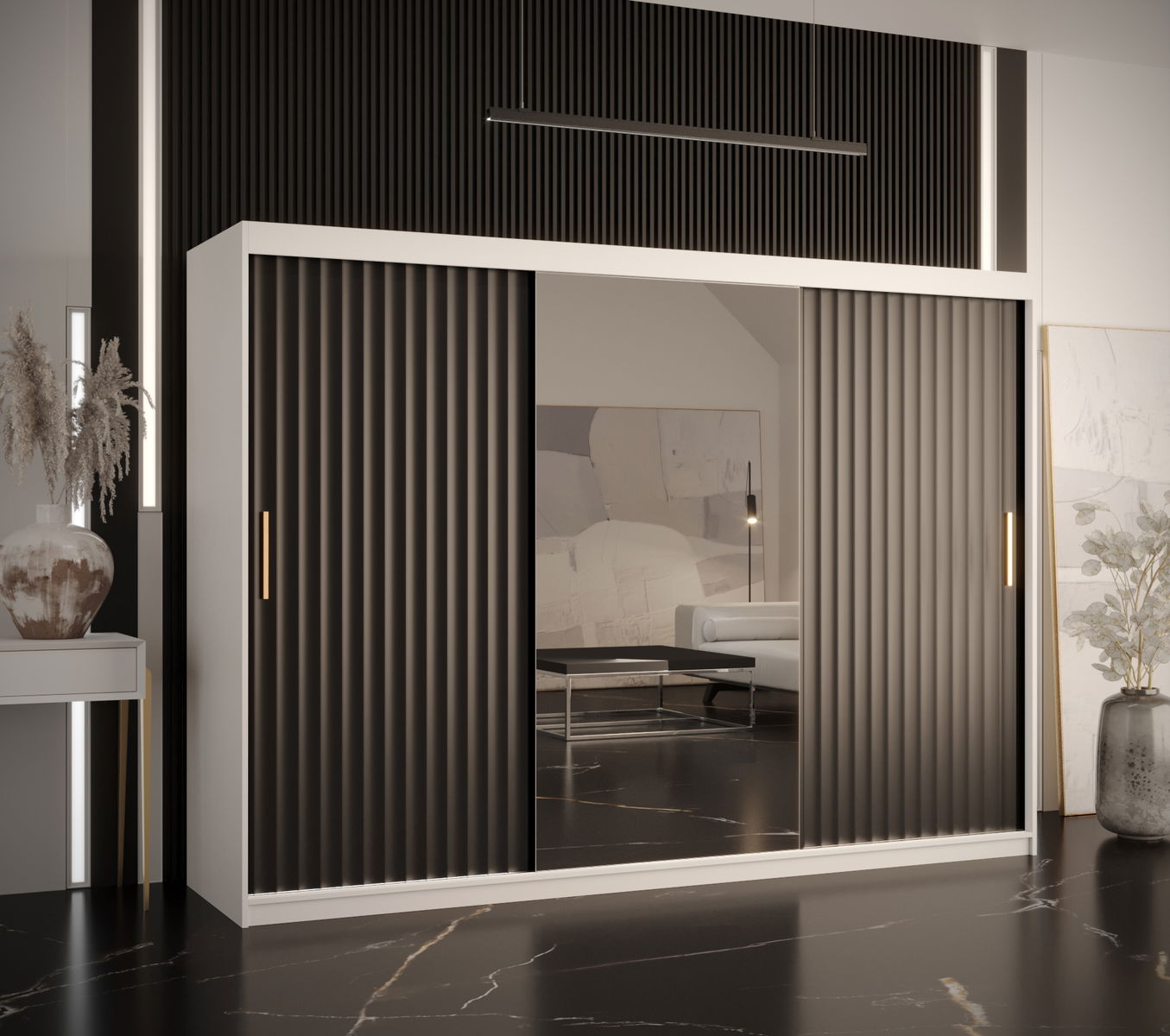 Šatní skříň se zrcadlem 250 cm Riana Wa 2 250 (bílá + černá)