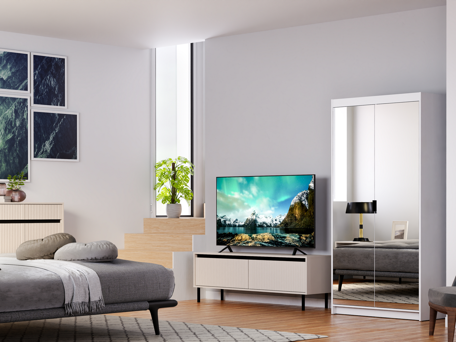 Šatní skříň se zrcadlem Elanor I (bílá)